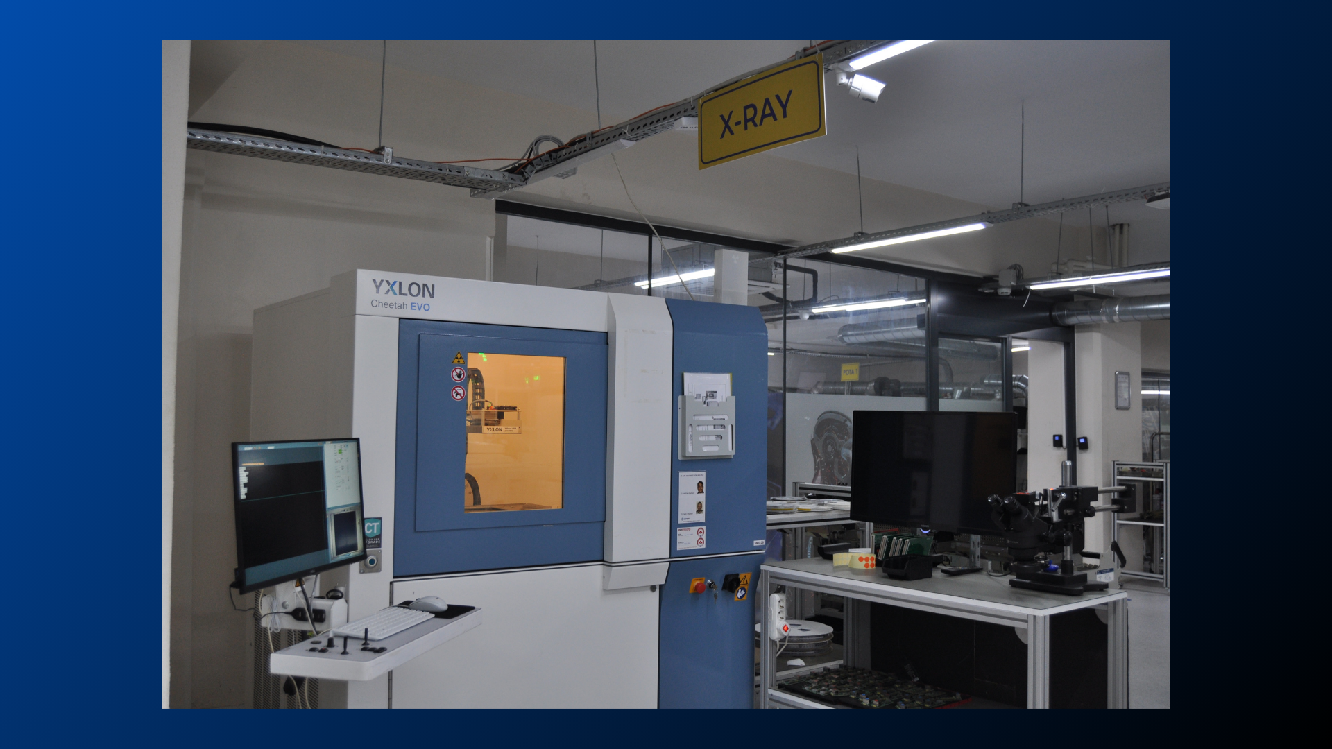 Demsay üretim tesisinde kullanılan endüstriyel X-Ray sistemi, elektronik kartların iç yapısını milimetrenin altında hassasiyetle görüntüleyerek, kalite kontrol ve Ar-Ge süreçlerine ileri düzey destek sağlar.